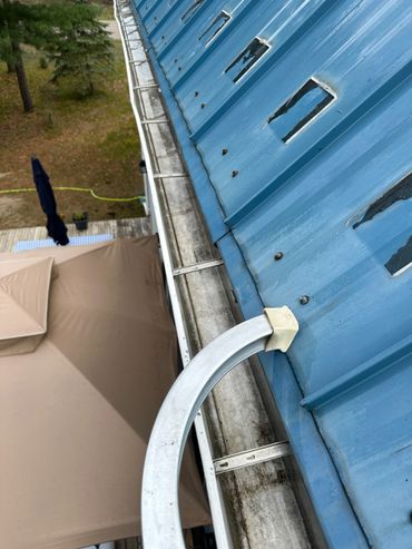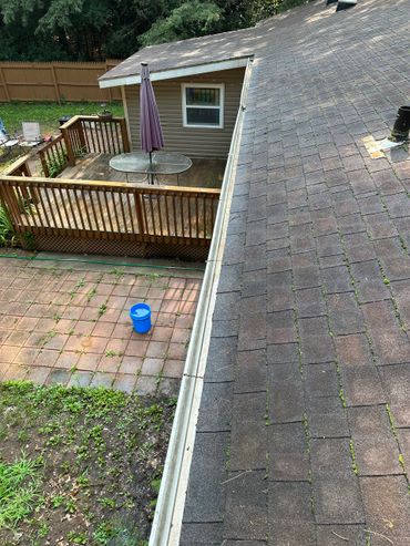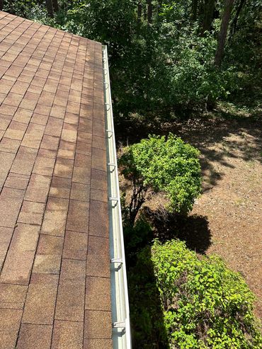 Sometimes the stains on the gutters can be stubborn and require a little extra attention. In that case we also offer gutter brightening service. This process uses a special set of cleaning agents and scrubbing with a brush to help remove "Tiger striping" on gutters typically caused by asphalt shingles.